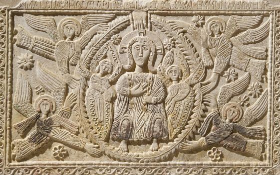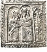 Se consideriamo l’Altare del Duca di Ratchis (fig.8), un’opera dell’VIII secolo, le rappresentazioni ci appaiono particolarmente sproporzionate. Nel riquadro frontale è raffigurato Cristo in Maestà (fig. 8) inserito in una mandorla (simbolo divino) sostenuta da quattro angeli, nei riquadri laterali troviamo L’Adorazione dei Magi e La Visitazione (fig.9). I soggetti appaiono con i volti piatti, frontali; gli angeli che sostengono la mandorla hanno mani grandi e Gesù ha i piedi minuscoli; nella Visitazione Maria e Elisabetta sono decisamente poco femminili e le loro braccia sono lunghissime. In tutti i rilievi l’artista ha riempito ogni spazio disponibile con rosette, intrecci o piccole croci. Eppure queste opere esprimono una meravigliosa armonia intrinseca, un’ingenuità rappresentativa che disarma: la spontaneità e la schiettezza con cui vengono rappresentati i soggetti riescono a comunicare una forza di fede di una tale freschezza e genuinità che in opere più elaborate o mimetiche viene persa. Le lunghe braccia di Maria e Elisabetta esprimono il loro legame tramite un forte abbraccio e le grandi mani degli angeli accentuano la potenza della mandorla divina. Se quest’opera viene guardata con animo aperto, senza preconcetti e senza voler pretendere che i soggetti siano aderenti alla realtà, scopriamo un nuovo concetto di “bello”, fatto di una grazia e semplicità che incantano.
