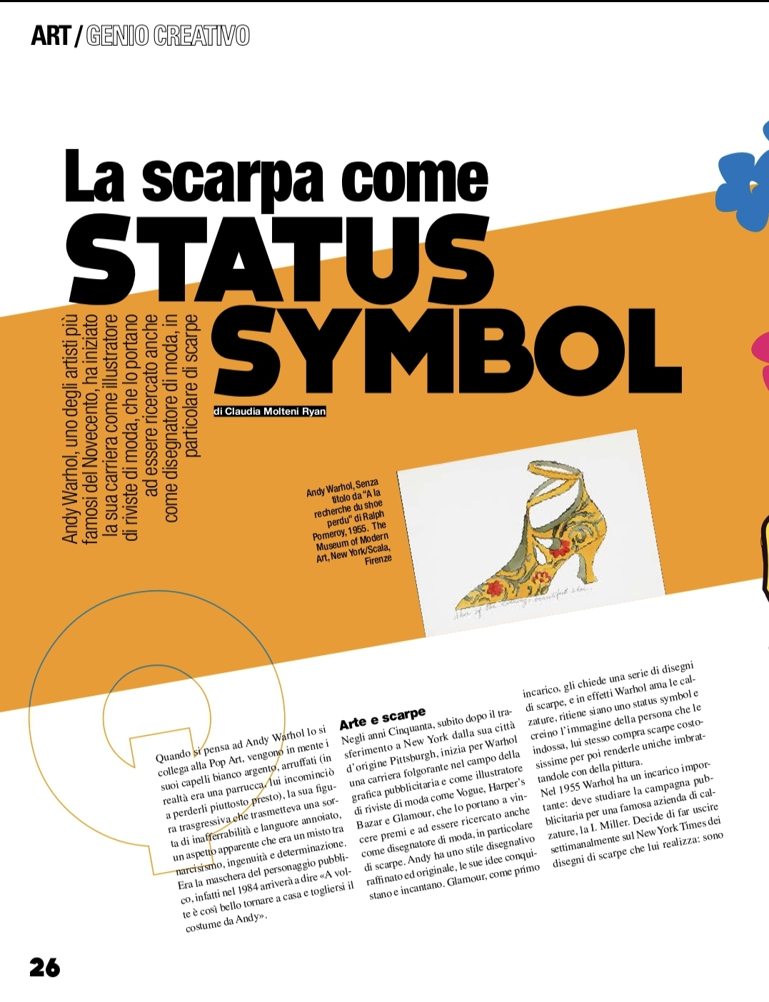 Per Andy Warhol le scarpe hanno avuto un ruolo speciale. Claudia Ryan ne parla in un articolo pubblicato sulla rivista Tech Art Shoes, numero di novembre 2021, qui ripreso integralmente.