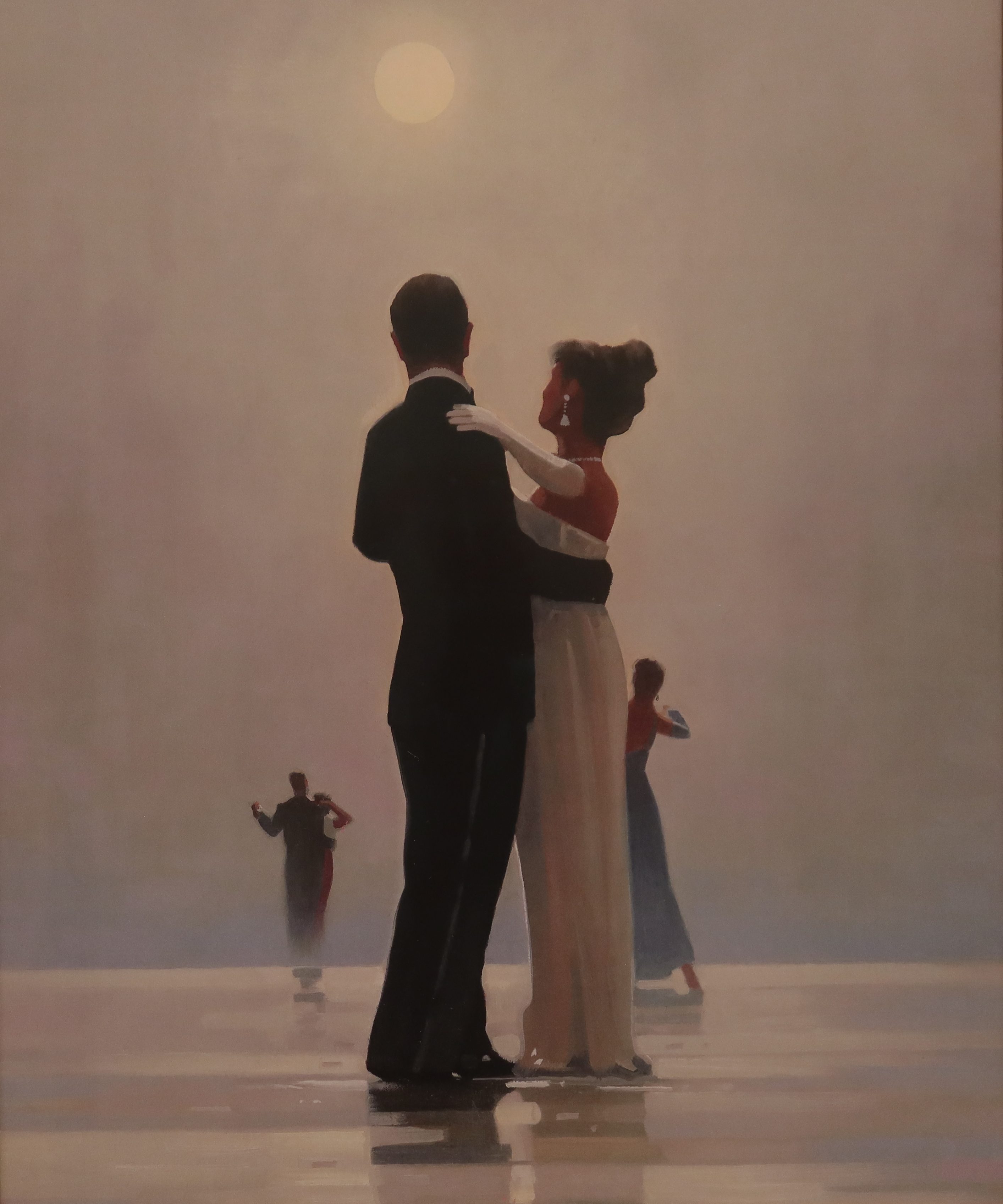 Jack Vettriano (1951 – 1925) ha messo in scena momenti di vita dell’upper class della seconda metà del XX secolo. I suoi quadri affascinano perché, con una tecnica impeccabile, ha creato immagini sospese in un tempo indefinito, dove tutto è eleganza, raffinatezza e misura, ma si coglie anche un pizzico di mistero. Sono istanti di solitudine dove il soggetto è perso nei propri pensieri, momenti di intimità di coppie immersi uno nell’altra, attimi di gioiosa convivialità.